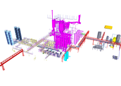 En 2014 participamos en el desarrollo de la planta de leche en polvo en Durazno, Uruguay, liderando el servicio de coordinación BIM en conjunto con Estancias del Lago y Tetra Pak PEP.